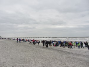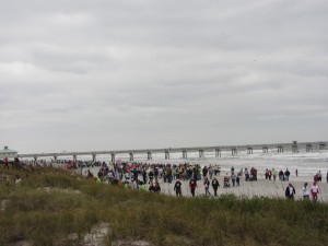 One of the perks to living in Florida is that our Buddy Walk is on the beach…and while last year we were in shorts and t-shirts, this year we were bundled up in sweatshirts and jackets! Our one-mile walk took us on a blustery walk along the beach – I was so impressed with how many families participated despite the bad weather.