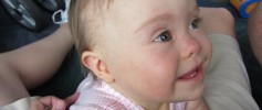 This picture was taken during a physical therapy session, she’s practicing staying up on all fours. She’s now an Army…